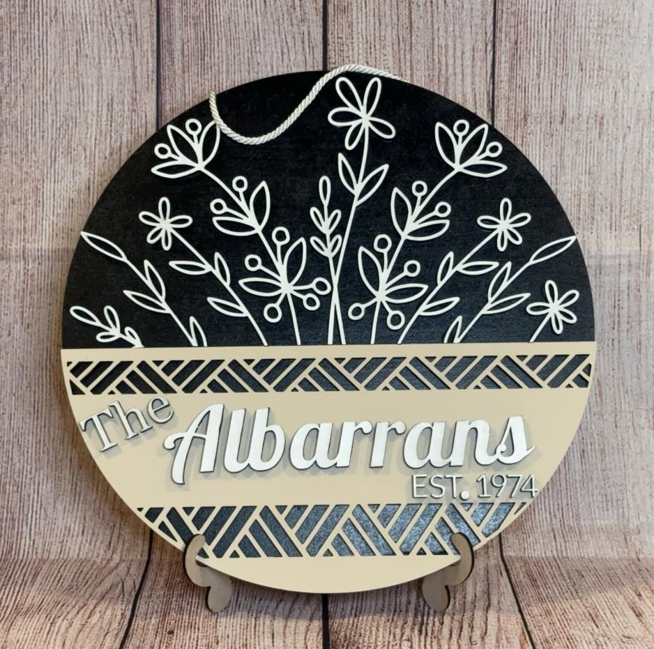A beautifully crafted wooden laser-cut family name wall sign, designed with precision and elegance. Perfect for home decor, entryways, or gifts. This custom piece adds a warm, personal touch to any space.